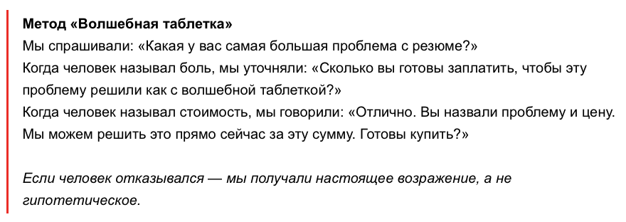 Самое неочевидное возражение, которое мы вытащили через метод «волшебной таблетки»: