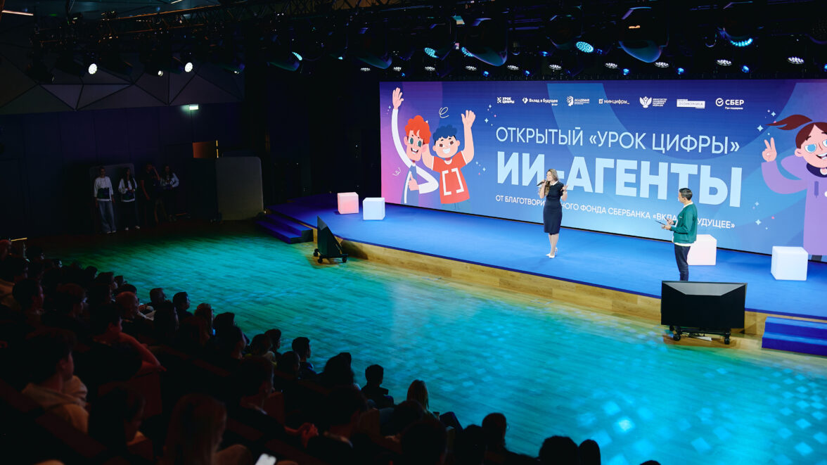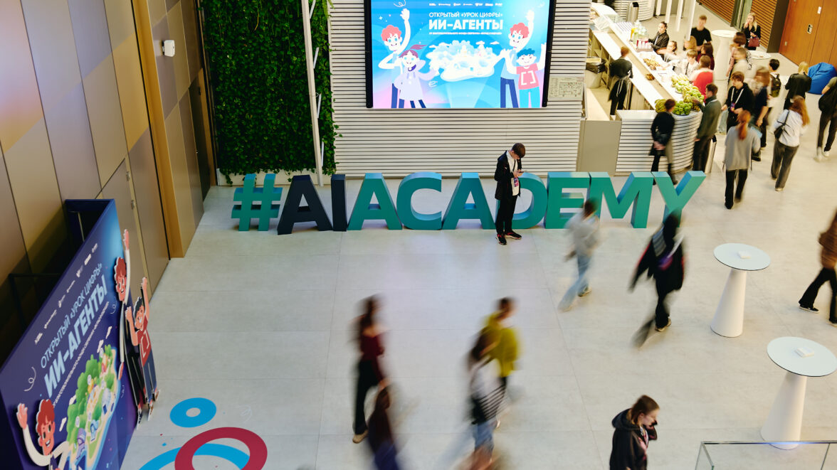 В основном зале до начала урока проходил увлекательный квиз с призами. Далее с приветственным словом выступили эксперты из сферы цифровой экономики и ИИ. Они рассказали, как искусственный интеллект меняет облик целых отраслей и повседневную жизнь.