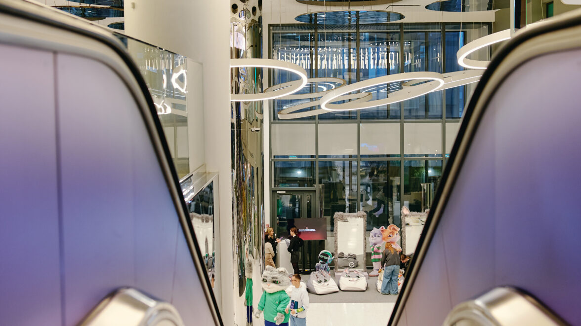 На первом этаже гостей встречали СберКотики. Ребята могли отдохнуть на котопуфах и сделать замурчательные селфи.
