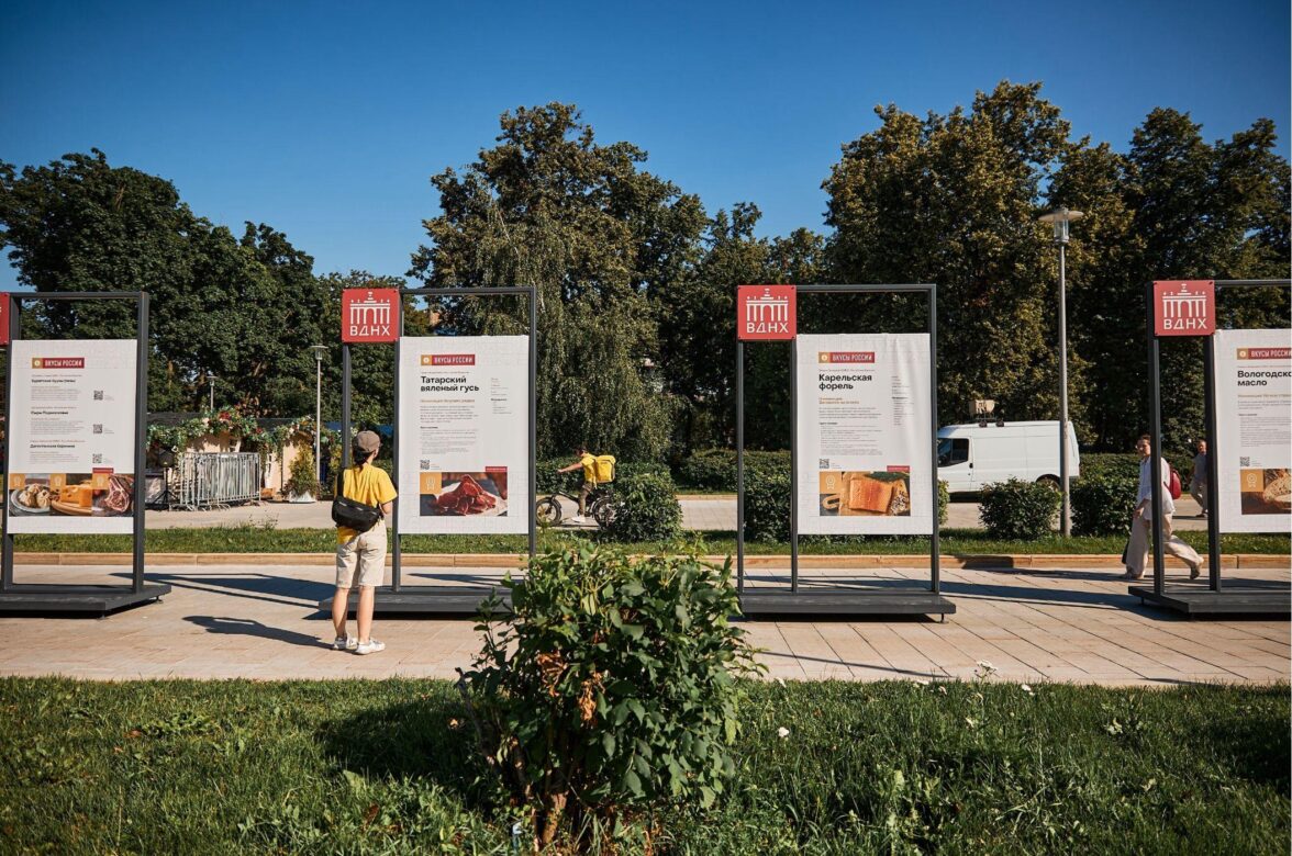Финальной точкой гастрономического путешествия стала выставка с рецептами региональных блюд производителей, победивших в конкурсе продуктов питания «Вкусы России» в 2020–2021 гг. (в 2023–2024 гг. конкурс не проводился).