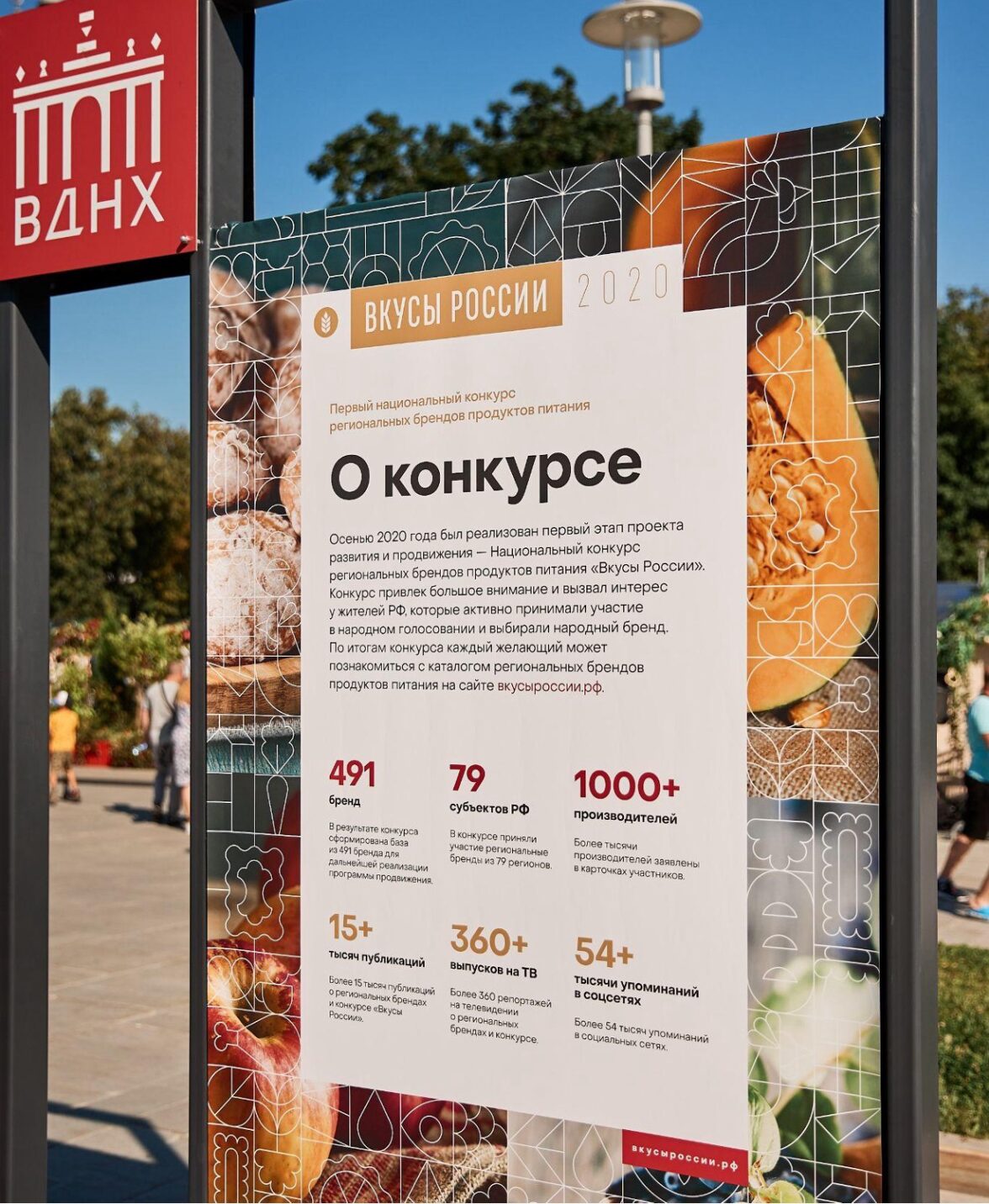 В 2020 году Министерство сельского хозяйства Российской Федерации разработало комплексную программу «Вкусы России». Она была запущена, чтобы поддержать региональных производителей продуктов питания по всей стране. Первым этапом программы стал конкурс, который проходил в течение двух лет и собирал более 700 региональных брендов. Конкурс познакомил россиян с уникальными продуктами. Например, что в Костроме есть не только костромской сыр, но и костромская черная соль и кологривский гусь, Вологодская область славится не только своим маслом и хлебом, но и лимонадом из Кириллова, а из Ямало-Ненецкого автономного округа можно привезти как оленину и рыбные консервы, так и настоящий арктический чай.
