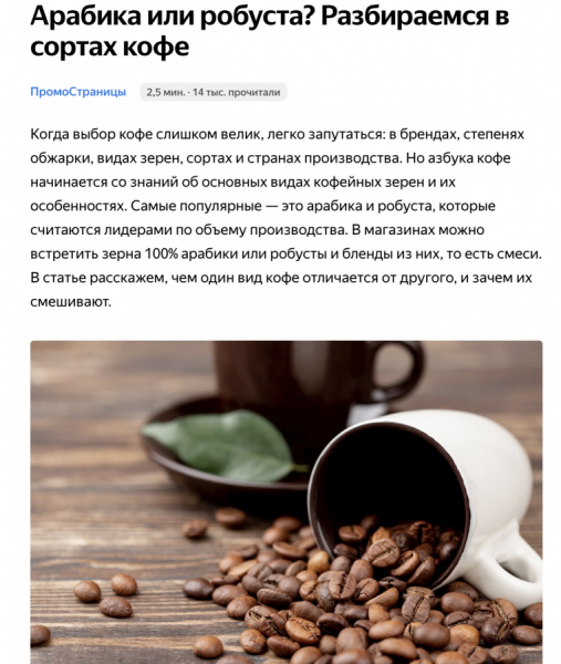 Наибольший интерес у аудитории вызвали статьи «6 фактов про кофе, которые мало кто знает», «Какие 5 фактов о кофе оказались ложью», «Арабика или робуста: в чём разница?». Эти материалы показали дочитываемость от 13 до 16 тыс. раз.