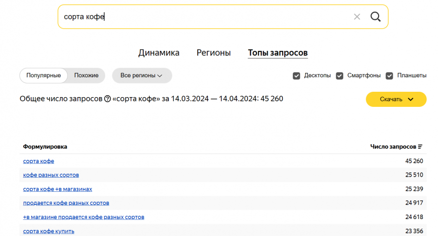 Сравнение: учитывая большое количество запросов в «Вордстат» о сортах кофе, мы решили включить эту тему в подборку. В статье рассмотрели разницу между арабикой и робустой, так как именно эти сорта представлены у бренда.