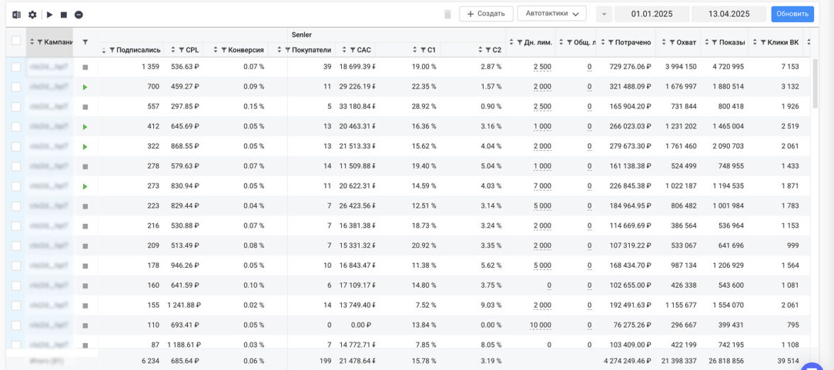 Для удобства в работе c рекламным кабинетом ВК, был подключен Loktar, где как раз и измеряли стоимость клиента (САС).