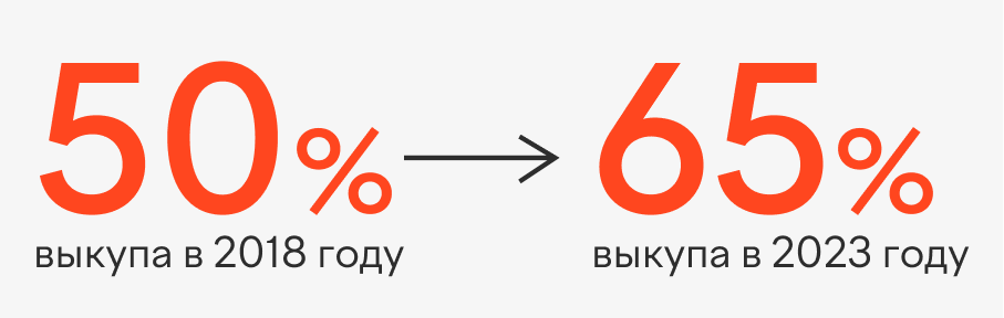 Он вырос с 50% в 2018 году до 65% в 2023.