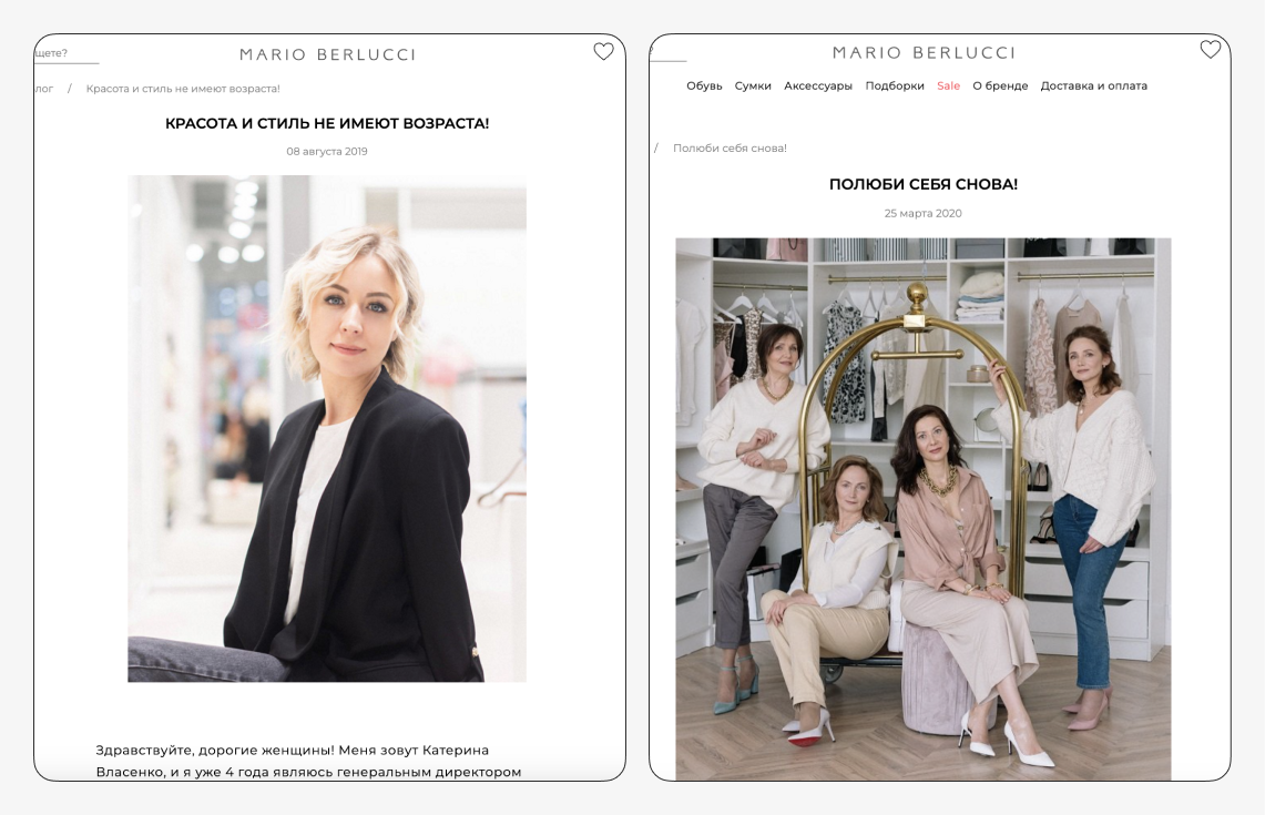 Так сформировалось позиционирование Mario Berlucсi — это не просто магазин обуви, а друг и помощник. Бренд регулярно проводит исследования и выявляет, с какими проблемами сталкиваются его клиенты.
