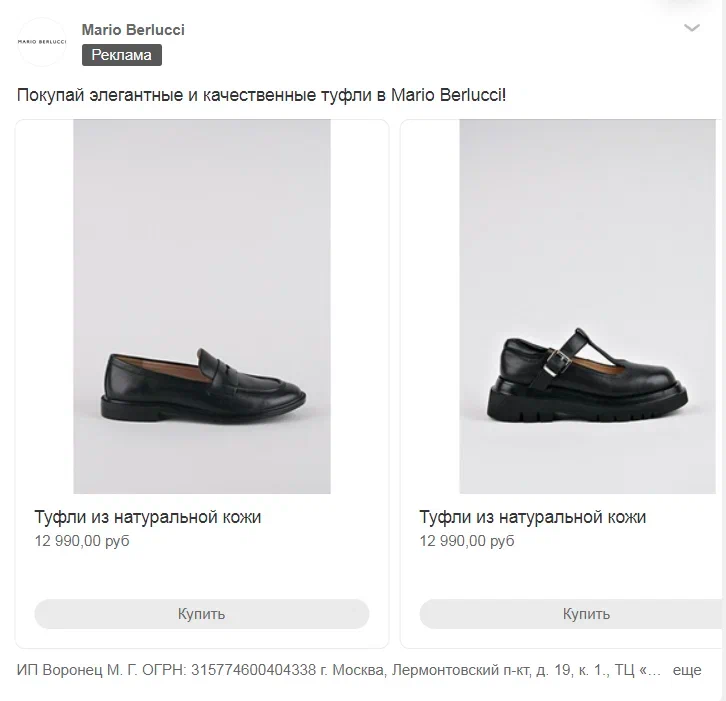 У товаров на сайте было техническое название, которое подтягивалось в рекламное объявление. Так, название «8457123_кросовки_ беж_турция» совсем не привлекало клиентов. Поэтому мы вместе с клиентом заменили его на «Кроссовки из натуральной кожи Mario Berlucci бежевые». Так же поступили и с другими названиями.