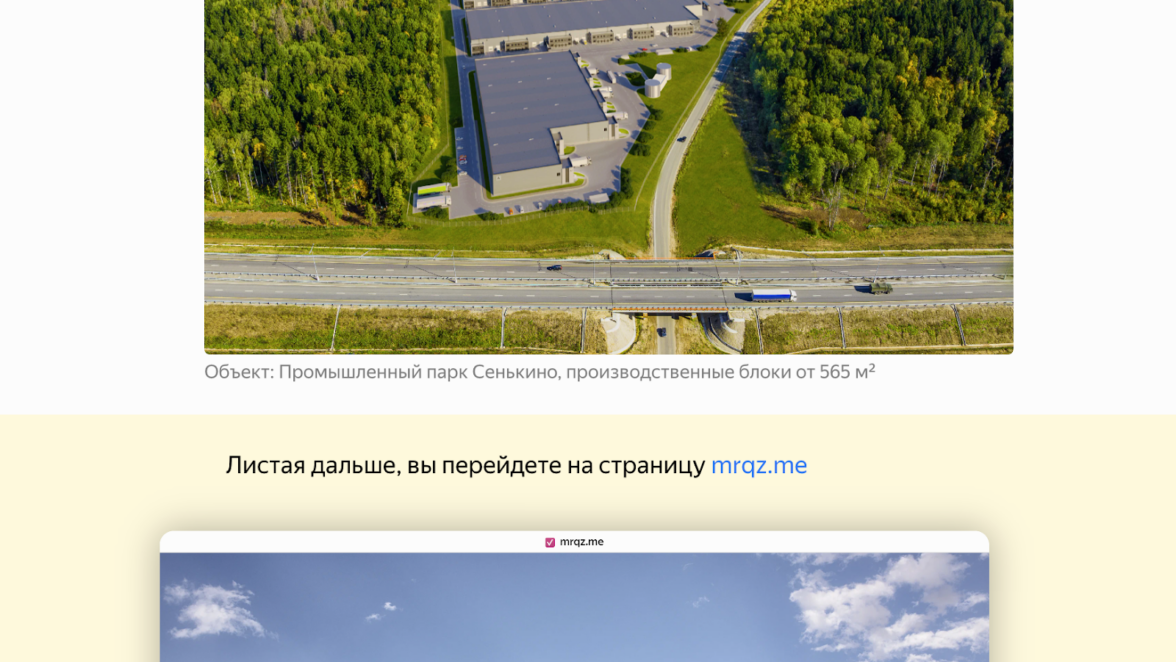 Мы решили протестировать ПромоСтраницы — brandformance-инструмент от Яндекса, который помог бы подробно рассказать о таком сложном и дорогом продукте, как коммерческая недвижимость в индустриальном (производственном) сегменте, описать его преимущества и прогреть аудиторию. Стоимость такого размещения относительно невысокая: чтобы получить первые результаты через месяц, стартовый бюджет компании должен быть не менее 1 200 рублей с НДС в день.