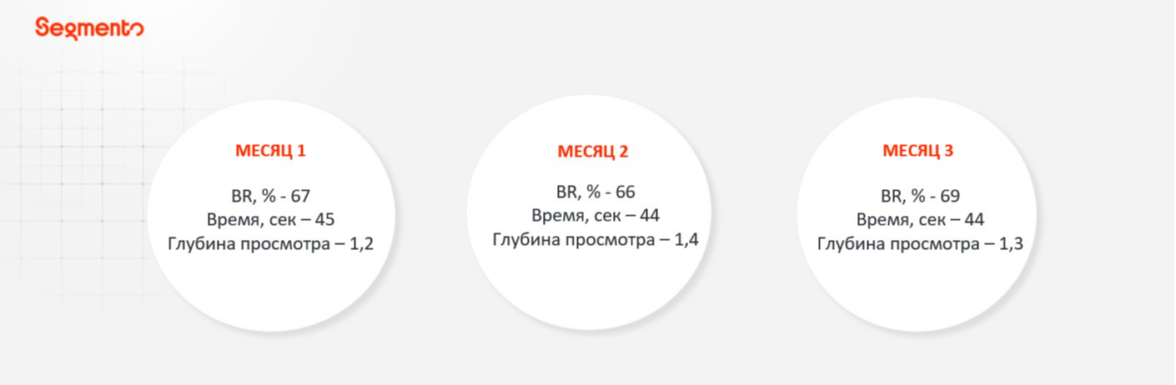 Когда набрали приемлемую статистику по РК, мы начали обучать наши модели оптимизации. Так как клиент не трекал конверсии, то мы обучили модель на увеличение вероятности качественной сессии по признаку глубины просмотра сайта (от 3 страниц и выше) и по времени сессии (от 2:00 мин. и выше).