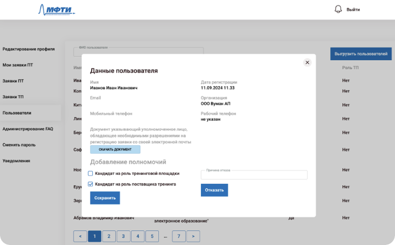 В рамках проекта был разработан отдельный инструмент отбора тренинговых площадок и поставщиков на 2022–2027 годы. Платформа позволяет легко верифицировать участников и гибко настраивать сроки их участия.