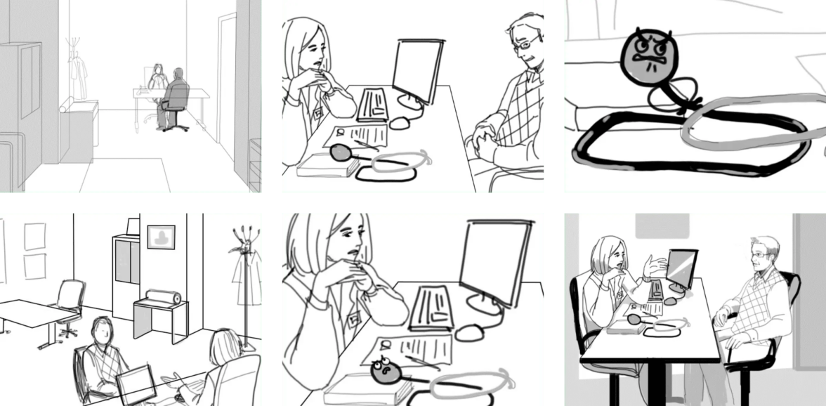 Решение: Мини-сериал с участием врача, пациента и анимированного стетоскопа, который юмористически подсказывает, как действовать в различных ситуациях.