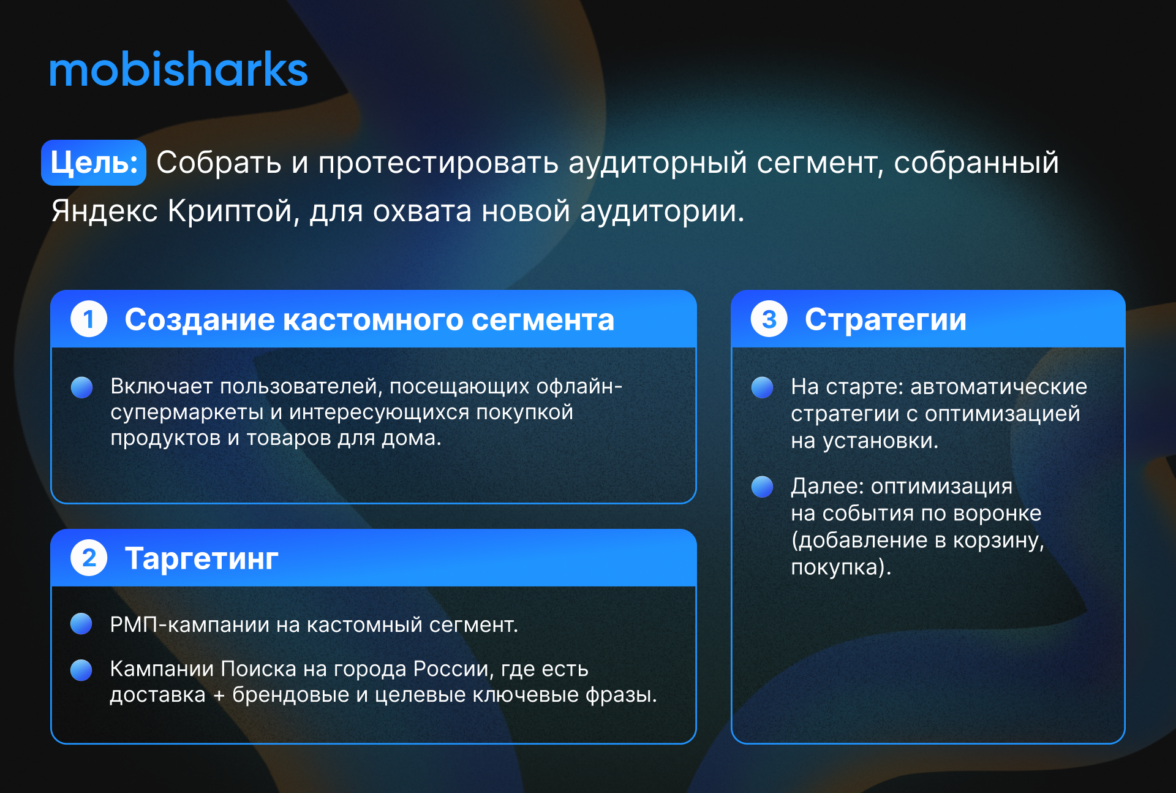 Кейс Mobisharks: как на 41% увеличить количество уникальных покупок благодаря кастомному сегменту «Яндекс Крипты» в отрасли food delivery
