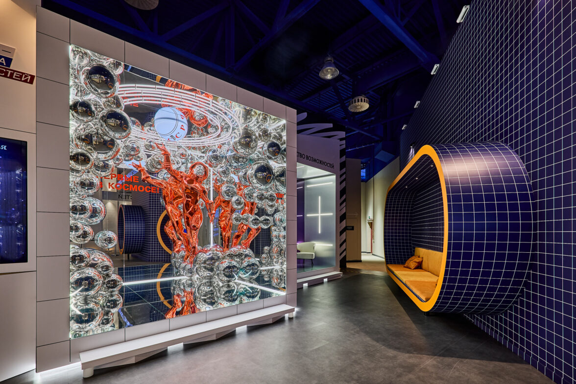 Команда Pattern digital разработала архитектурную концепцию и функциональное зонирование территории, выполнила комплексную застройку пространства площадью более 1000 кв. м. и осуществила подбор профессионального серверного и мультимедийного оборудования с последующей инсталляцией, реализовали производство декораций по индивидуальному проекту и разработали все интерактивные блоки, включая образовательные активности в игровом формате и систему генерации пользовательского контента (UGC), застроили постоянно действующий конференц-зал на 150 зрителей и обеспечили полное документальное сопровождение по 223-ФЗ.