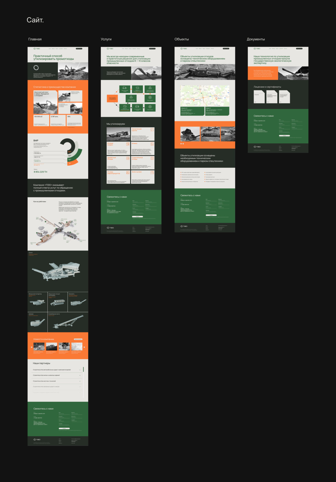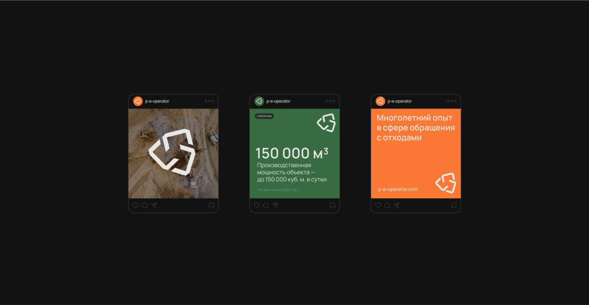 ПЭО экологично и прозрачно утилизирует разные виды промышленных отходов с помощью современного технологичного подхода. Чтобы воплотить дух компании в брендинге, мы выбрали цвета, отражающие ценности компании.