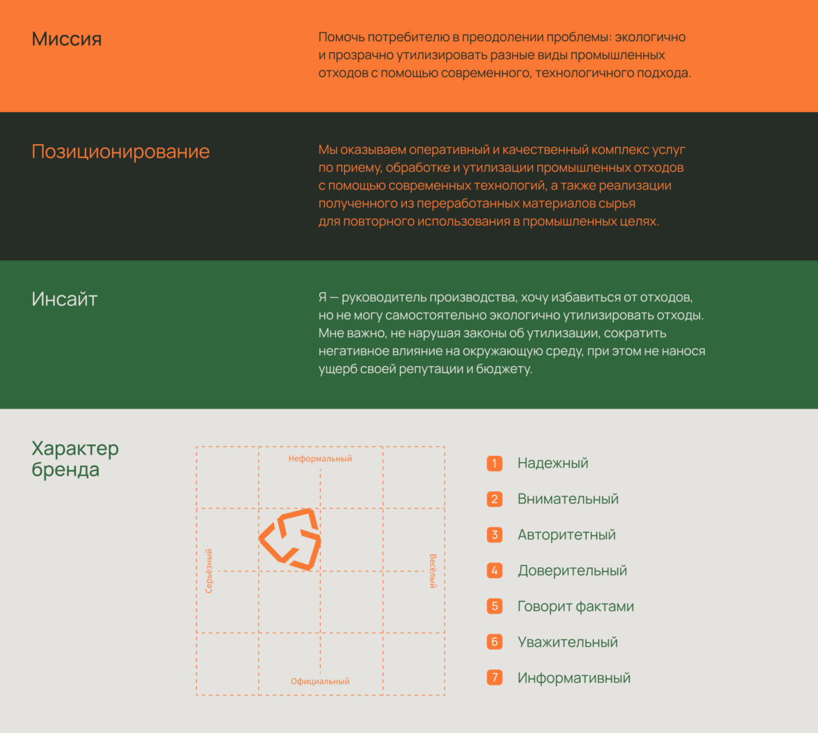 а) Миссия бренда определяет цель и намерения. В данном аспекте компания стремится помочь потребителю в преодолении проблемы: как экологично и прозрачно утилизировать разные виды промышленных отходов.