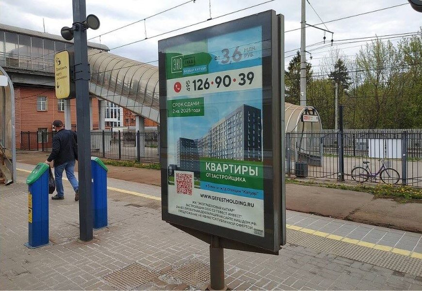 Так появилась идея запуска рекламной кампании на ситиформатах пригородных железнодорожных станций и МЦД. Для ее реализации и активного продвижения продаж нового Жилого комплекса «Экоград Новый Катуар» ГК «Гефест» воспользовалась нашим сервисом.