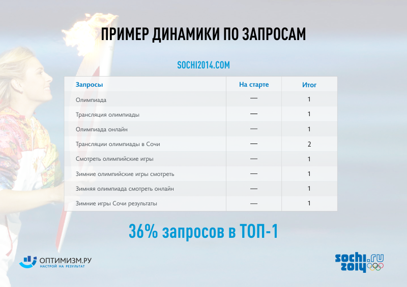 Когда Россия завоевала золото в конькобежном спорте, наша команда seo в optimism оперативно приступила к созданию и распространению новостного контента, который принесет релевантный трафик. Мы должны были действовать быстро, отслеживая ход игр и результаты в режиме реального времени и быстро продвигая актуальные запросы на верхние строчки поисковых рейтингов. В течение 24 часов сайт уже продвигался по соответствующим ключевым словам.
