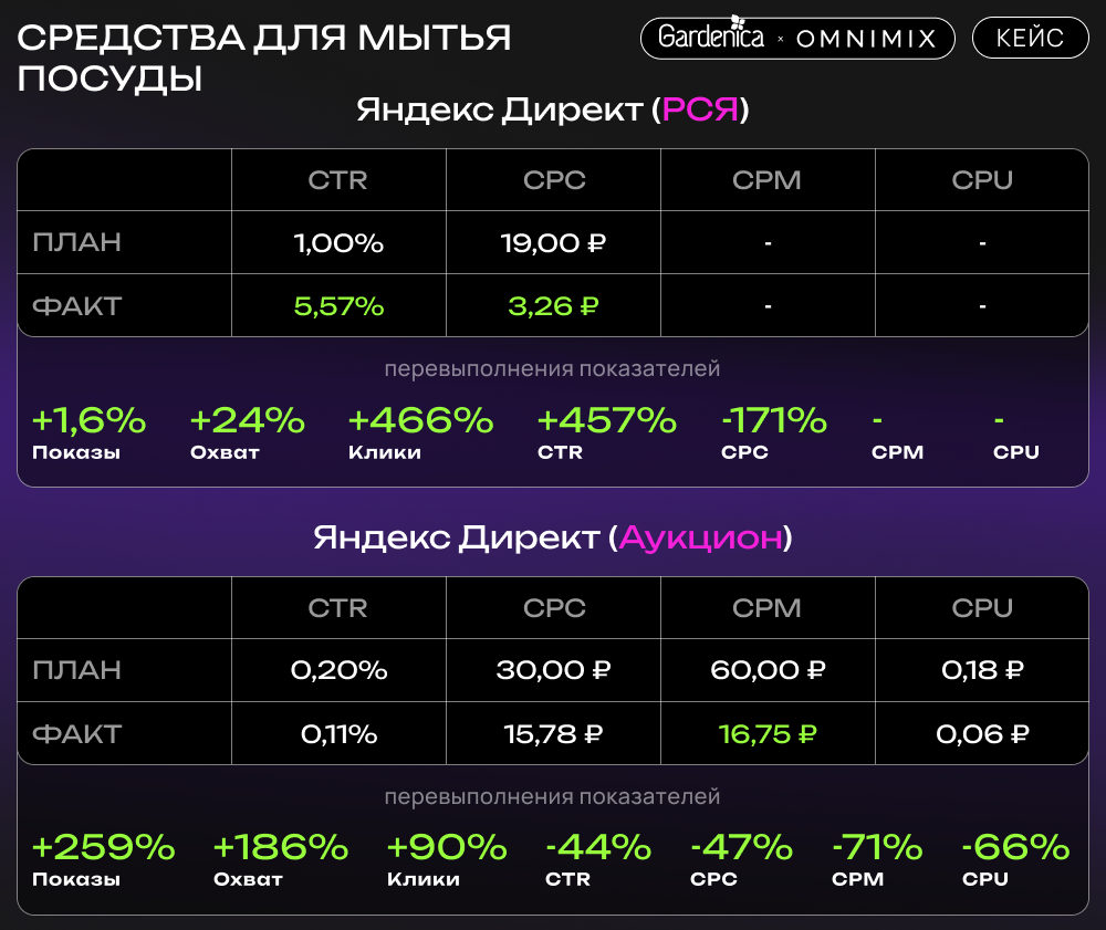 Средства для мытья посуды: высокий охват и CTR при сниженных затратах на клик