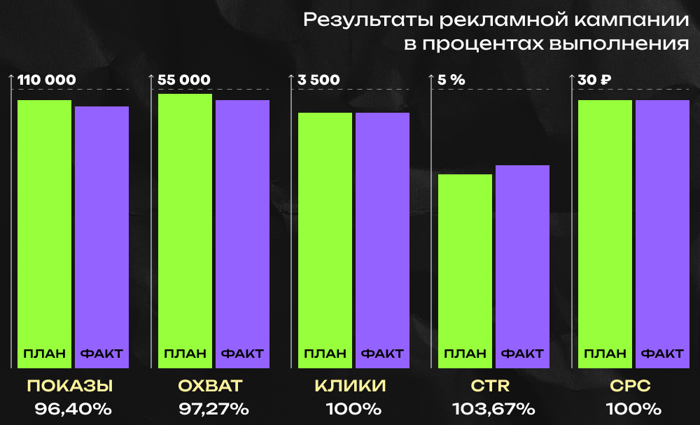 Качественные показатели оказались выше, чем у стандартных каналов (контекст и таргет). План по кликам выполнен на 100%.