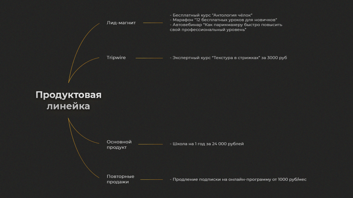 Продуктовая линейка проекта «Артем Любимов — обучение парикмахера»