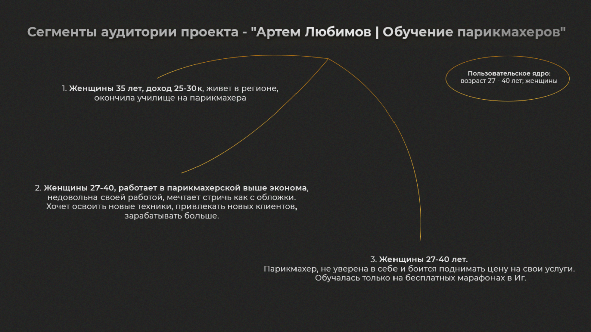Сегменты аудитории проекта «Артем Любимов — обучение парикмахера»