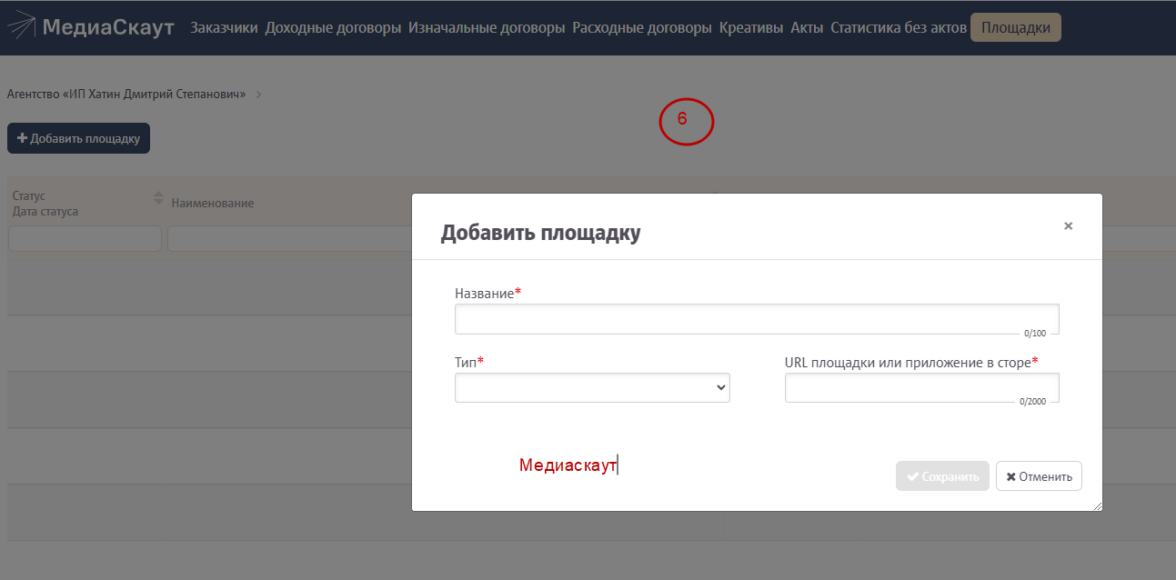 В ОРД Медиаскаут площадку можно занести без привязки к Контрагенту по аналогии с ОРД Озон (слайд 6).