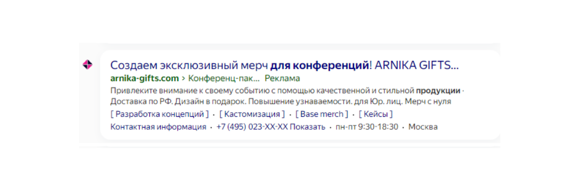 Наш клиент работает только с B2B-сегментом, заявка от физическая лица считается нецелевой. До работы с нами команда Arnika Gifts провела маркетинговое исследование, поэтому мы знали ЦА: