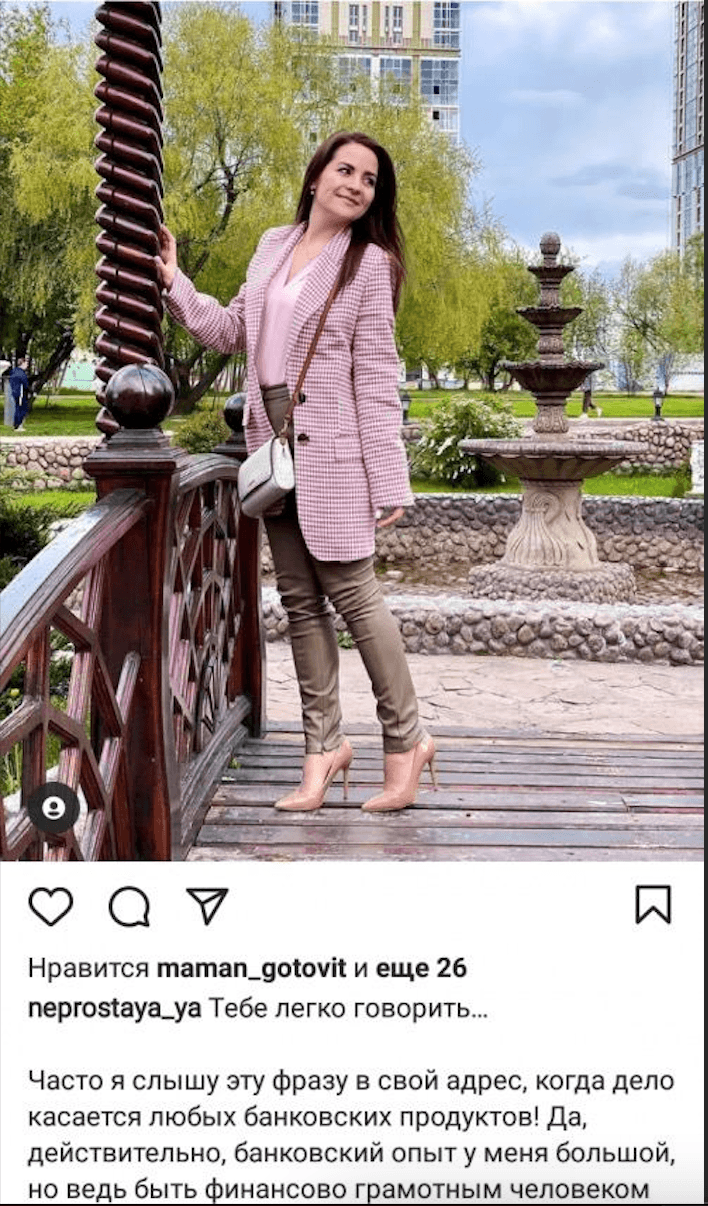 Вместе с банком мы отобрали блогеров, которые писали на тему финансов или рассказывали, как сэкономить на покупках или переводах с карты на карту. При этом блогер не должен был пересекаться с другими финансовыми организациями, иначе аудитория теряет доверие. Таких блогеров оказалось немного, поэтому мы расширили пул и стали приглашать семейных и лайфстайл–инфлюенсеров.