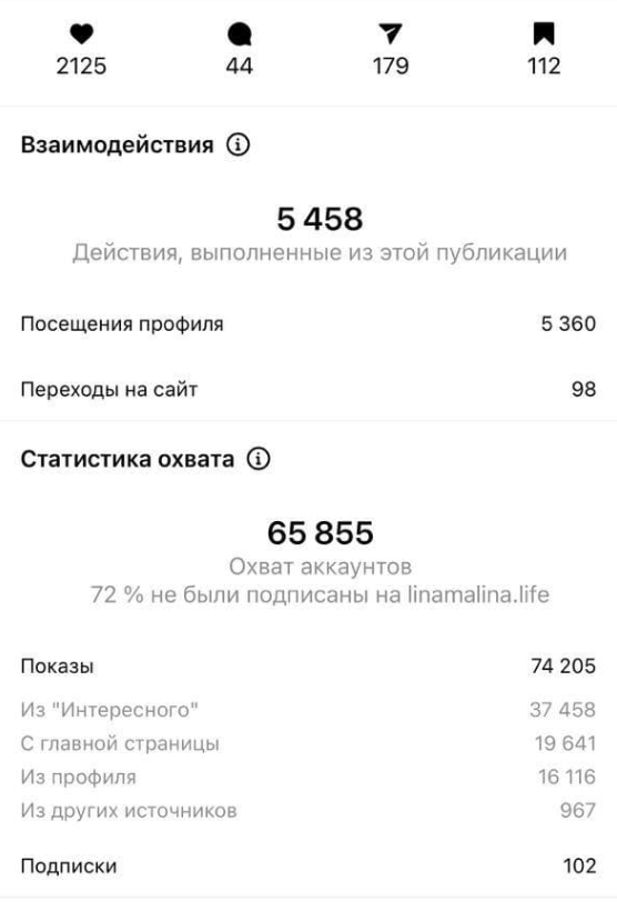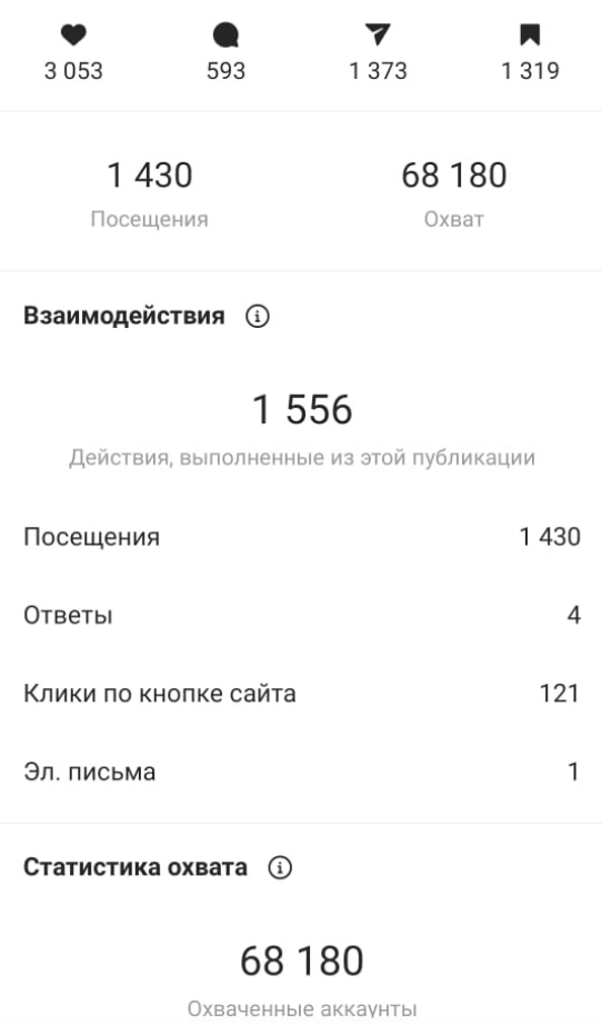 Мы пригласили к сотрудничеству несколько десятков блогеров, которые ведут аккаунты в разных тематиках, затем решили сделать упор на охваты и вовлеченность — и это сработало. Но когда рекламная кампания закончилась, подписчиков все равно было недостаточно: только 3000 из 9000. Зато банк получил потрясающий виральный эффект, рост органики и огромное количество сохранений постов блогеров. Публикации охватывали по 40–65 тысяч пользователей Instagram*, и каждую из них сохраняли по 50–120 раз.