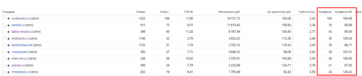 Оставляем только те сайты, которые приносят наиболее заинтересованную аудиторию и, как следствие, ведут к увеличению продаж. Можете посмотреть сами: