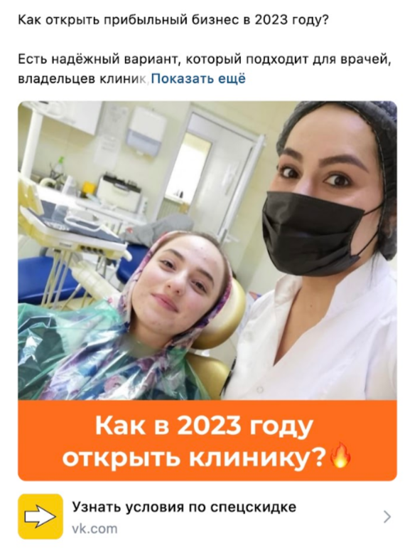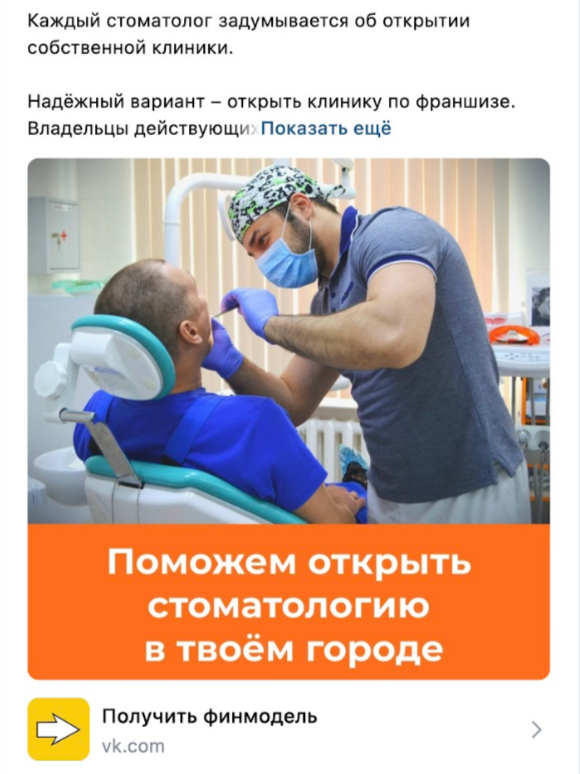 Преимуществом является то, что конкурентов в этой нише практически нет, все аудитории мы собрали с помощью парсера. Хорошо сработала аудитория врачей, зубных техников, стоматологов.