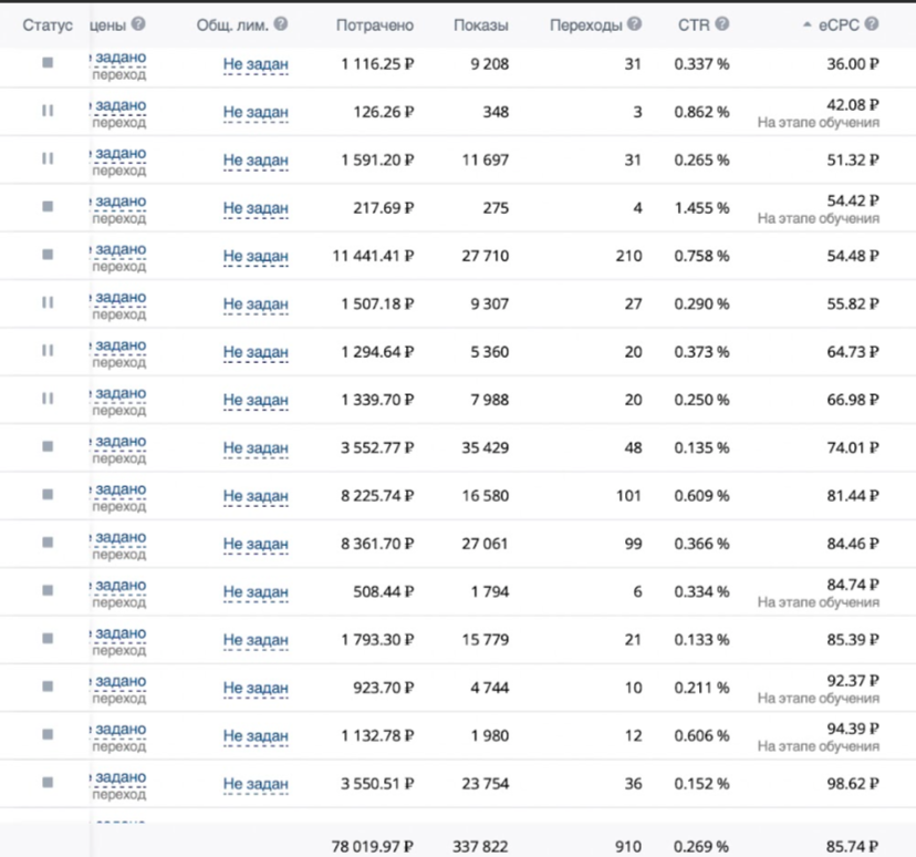 Лучшие результаты во ВКонтакте показывают рекламные кампании с «приземлением» в саму группу. После нескольких дней тестов мы отключили трафик на лид-форму, потому что заявки были дороже 1000 рублей.