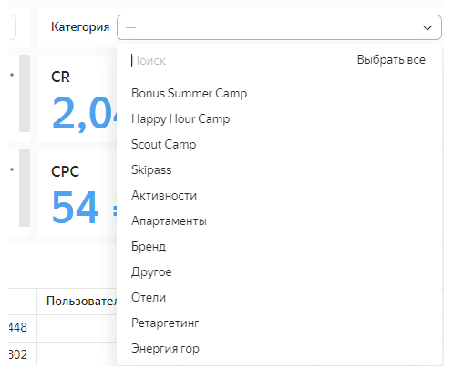 Изначально большая часть бюджета тратилась на поисковые кампании с ручным управлением ставками. Например, Поиск-Бренд, Поиск-Отели, Поиск-Апартаменты и т.д. Поскольку у клиента много направлений и активностей, то для более эффективной аналитики и лучшей оптимизации мы сгруппировали эти направления по кампаниям в соответствующие категории.