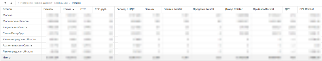 кампании разбиты на отдельные регионы, что мешает обучению стратегий. Регионы с небольшим количеством конверсий не получают достаточно данных для корректного назначения ставок. Изначально клиент не был готов объединять города в одну РК, так как боялся, что не сможет анализировать статистику. Но мы настроили кастомный отчет в Roistat и Datalens с разбивкой по регионам, что позволило контролировать объем трафика между городами, а также убедили клиента, что объединение регионов приведет к увеличению конверсий;