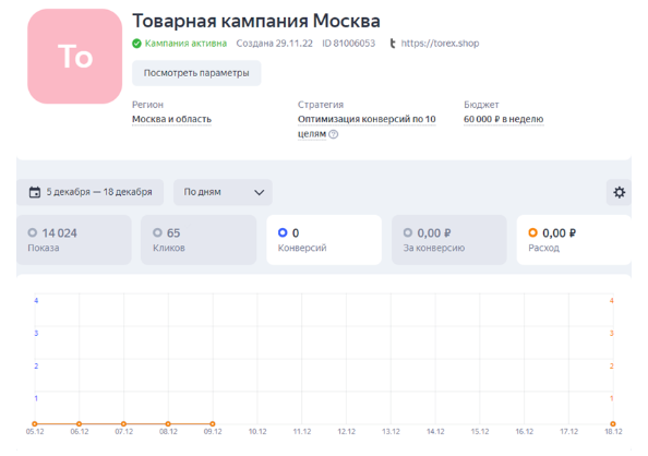 товарная кампания была запущена, но трафика она не получала, так как была указана слишком низкая стоимость конверсии;