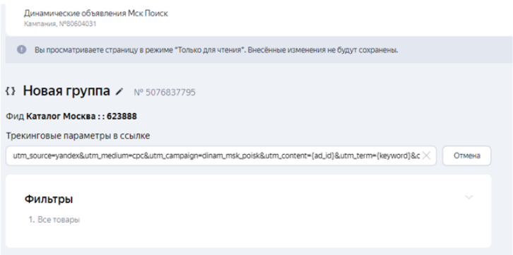 в динамических поисковых объявлениях все товары находились в одной группе. Мы предложили разбить товары на отдельные группы, чтобы, во-первых, прописать релевантные объявления, во-вторых, мы могли отключать неэффективные группы;