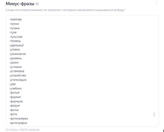 Отказ от минус-слов в РСЯ с целью увеличения охвата.