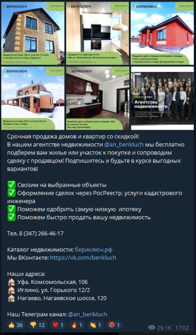 Второе, это малое количество локальных телеграм-каналов, чтобы там была не накрученная аудитория и адекватная стоимость размещения. В остальном, всё так же как и других соц.сетях.