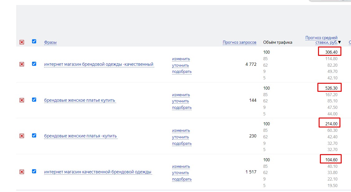 Сразу отказались от использования ключей: «брендовая одежда» и «женская одежда». Почему? Они слишком широкие. Нам нужна была ЦА, которая купит, а не просто пролистает несколько объявлений, то есть активная и заинтересованная. Магазин недавно открылся, необходим результат — заказы.