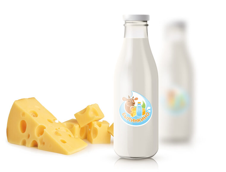 Графические элементы (фермерские продукты, такие как сыр, молоко, масло, в виде капель молока);