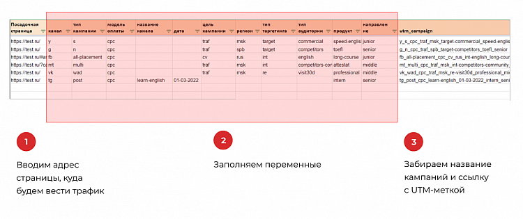 До начала работ мы собрали справочник UTM-разметки, который помогает точнее отслеживать результаты рекламных кампаний и упрощает работу специалистов.