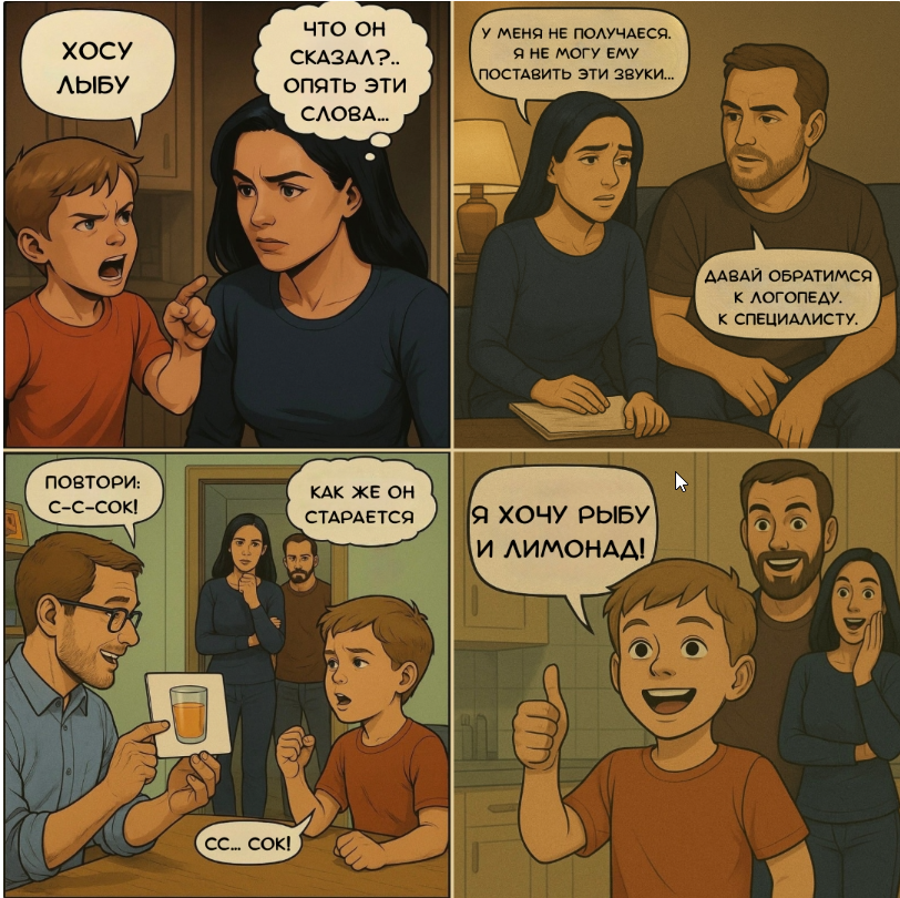 Через боли: родители пытались «поправить» речь по книжкам дома, но это не помогало.