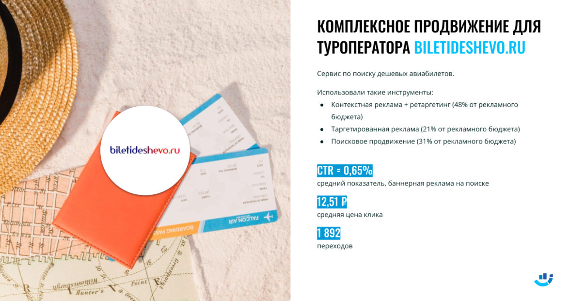 Продажа авиабилетов. Научили 2 000 пользователей искать дешёвые авиабилеты. Комплексное продвижение сайта туроператора BILETIDESHEVO
