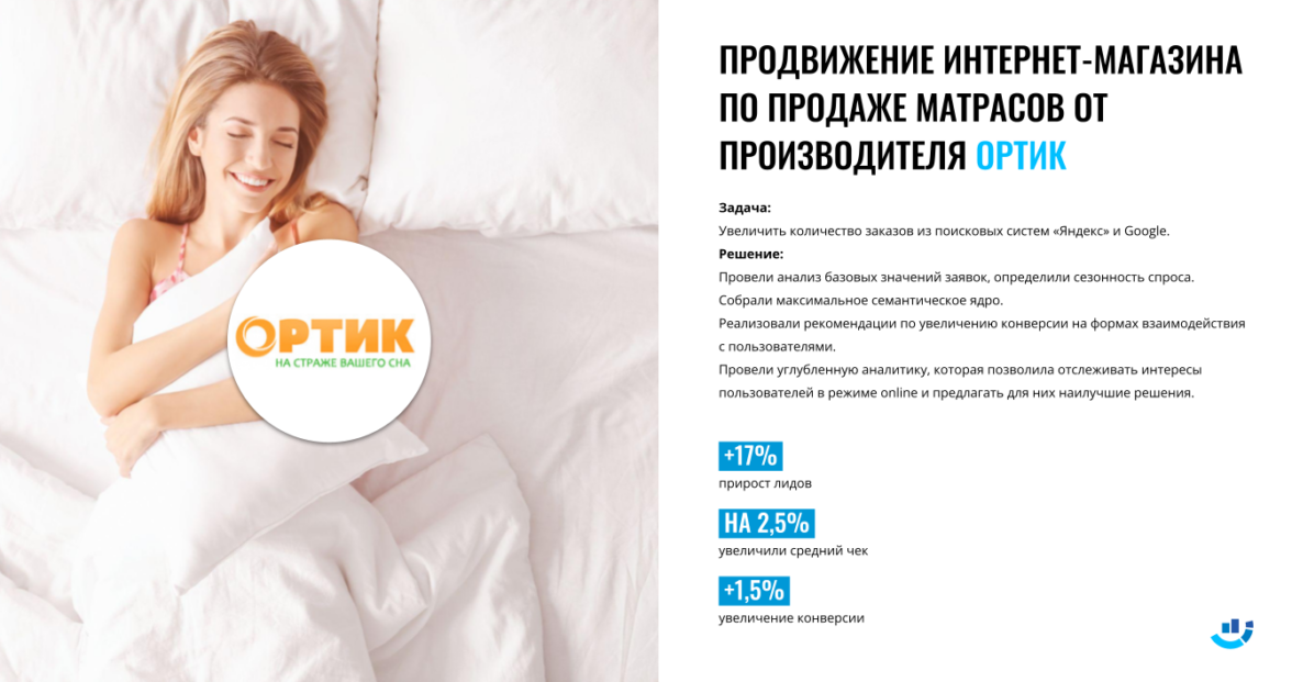 Кейс: продвижение продукции для сна и отдыха. Увеличили прирост лидов на 17%. Комплексное продвижение интернет-магазина матрасов