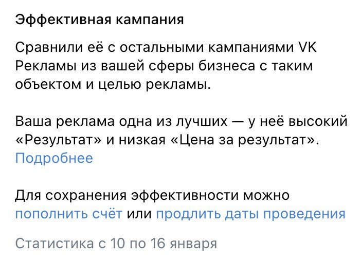 Настроили Рекламный кабинет в VK и запустили 50+ рекламных объявлений на разные креативы и варианты текста, регулярно отслеживали и анализировали результат.