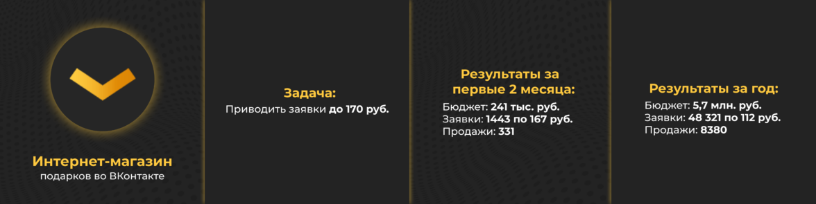 Кейс: продвижение интернет-магазина подарков во ВКонтакте — 8380 продаж на 60,7 млн руб. за год