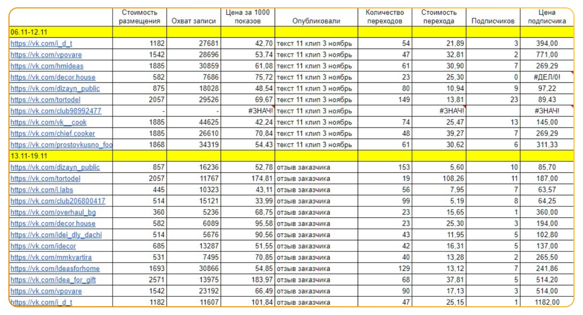 Расчеты показали, что приблизительно 20% от общего количества переходов становятся заявками. Лучшие результаты дают группы для посева «Дизайн интерьера и ремонт».