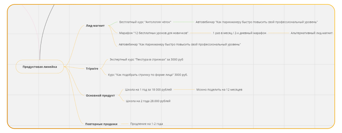 Продуктовая линейка помогает определить, на какие продукты компании нужно сделать упор в рекламе на разных этапах прогрева аудитории.