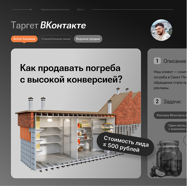 С вами маркетинговое агентство «В точку», и сегодня расскажем, как нам удалось продвигать погреба через таргетированную рекламу ВКонтакте с отличной конверсией, даже несмотря на высокую конкуренцию на рынке и постоянно растущие расходы на рекламу.
