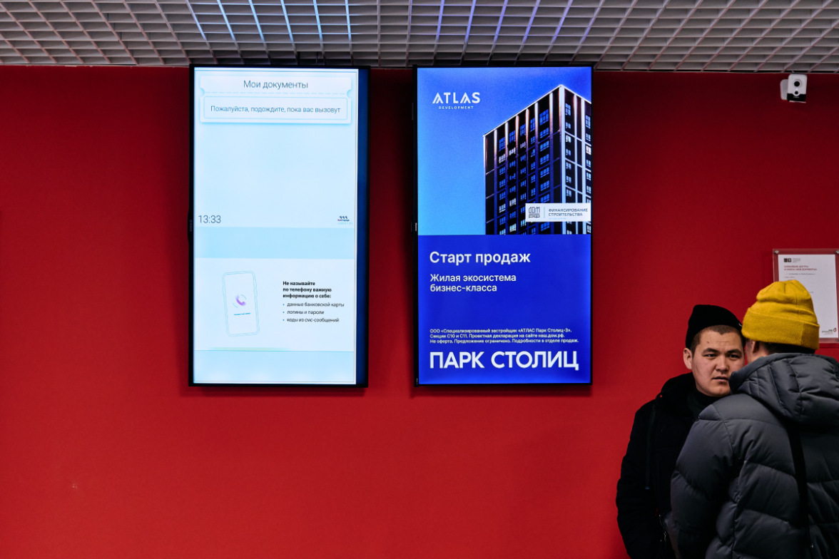 Реклама «Атлас Девелопмент» на видеоэкране в МФЦ
